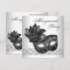 Convites de festa de máscaras preto elegante. Convites de festa de máscaras branco e máscara preta e prata elegante. Convite de festa de máscaras preto e branco lindo funciona bem para uma festa de máscaras sweet sixteen, festa de máscaras de aniversário, festa de máscaras de quinceanera, festa de máscaras de feriado, ou qualquer outra festa com tema preto e branco. Fácil de personalizar para a sua festa ou evento! Adicione seus detalhes na frente e/ou verso simplesmente escolhendo o botão laranja "Personalize!" para começar a adicionar os detalhes do seu evento, estilo de fonte, tamanho e cor da fonte, e texto. Por favor, note que todos os desenhos de convite que você encontrará no Zazzle são gráficos impressos em papel simples sem joias, laços, relevos, rebaixados ou peças ou partes adicionais.
