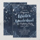 Convites de Festa Elegantes Azuis de Inverno Encantado. Personalize da maneira que preferir.