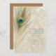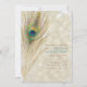 Convites de festa glamorosos com pena de pavão exótico dourado. Personalize para qualquer evento.