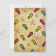 Festa Luau na praia tropical arenosa com tochas tiki, estrelas-do-mar, chinelos, tudo em uma praia arenosa com a costa do oceano.