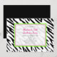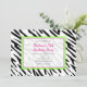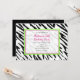 Convites de festa verde lima e rosa com estampa de zebra. Personalize para qualquer evento.