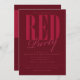 Convites de Festa Vermelho Radiante. Convites de festa modernos e vermelhos monocromáticos apresentam texto estiloso com um visual vermelho no vermelho. Esta é uma ótima escolha de convite para festas de aniversário, festas de despedida de solteira, aniversários de 16 anos, festas de adultos e mais! Suprimentos e decorações adicionais para festas estão disponíveis em Metro-Event.com e Metro-Events no Zazzle.