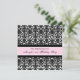 convites de festas de aniversário de 21 anos personalizados em uma elegante cor damasco floral rosa, preto e branco clássico e brilhante. Adicione seu nome e detalhes da festa para um convite de festas aniversário de 21 anos exclusivo e na moda.