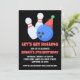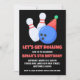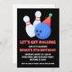 Jogue seu caminho para uma festa retrô-incrível! Estas convites de festas de boliches legal são perfeitas para a festa de aniversário de um menino ou para um evento de boliche de crianças divertidas. Apresentando um design de pino da boliche retrô em azul e vermelho em negrito, esses convites terão seus convidados rolando em entusiasmo.