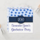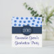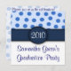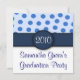 Estes convites adoráveis são azuis-claros na metade superior com bolinhas azuis médias. A parte inferior do convite é branco sólido com marinho azul. As metades superior e inferior são divididas por uma banda azul marinho sólida com um círculo azul marinho onde você pode adicionar seu próprio texto, seja um ano de graduação, um início monograma, etc. O verso desses convites é um azul claro mudo com med. bolinhas azuis e marinho azul. O texto pode ser personalizado para atender às suas necessidades. Esses convites são perfeitos para graduações, chás de fraldas, aniversários, festas de inauguração e muito mais. O exemplo mostra o convite sendo usado para uma festa de formatura. Celebre em estilo com estes Convites de festas de Bolinhas Azul!