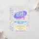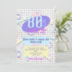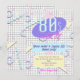 Um convite com uma impressão divertida inspirada em gráficos geométricos dos anos 80 feitos de pastéis coloridos doces.