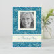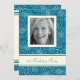 convites de festas personalizados de aniversário de 21 anos de fotos em elegantes turquesas e padrões florais de creme. Adicione suas fotos e detalhes da festa para um convite de aniversário exclusivo e na moda.