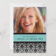 convites de festas de aniversário de 21 anos de fotografias personalizadas em azul-turquesa elegante, cor damasco floral clássica preto-e-branco. Adicione seu nome, foto e detalhes da festa para um convite de festas aniversário de 21 anos exclusivo e na moda.