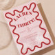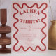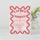 Convite de festas aniversário de 30 anos de borda ondulada vermelha e rosa. Par com nossos menus de festas de janto de aniversário.