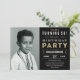 Convites de festas de aniversários adultos com design de brilho preto e ouro. Carregue sua foto antiga e personalize o texto para qualquer idade.