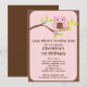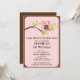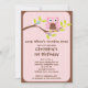 Enfie sua festa de aniversario de meninas da coruja fora do direito com nosso convite de aniversário bonito da coruja do bebê que caracteriza uma coruja cor-de-rosa & marrom bonito que senta-se em um ramo de árvore com as flores ajustadas em um fundo cor-de-rosa da listra e em uma beira marrom na moda. Aperfeiçoe para um primeiro aniversário das meninas ou todo o aniversário da idade. Inteiramente customizável por você com sua informação. design do ©Blackleaf