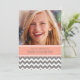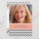 Convites de festas de aniversários da foto feita sob encomenda os 16os no rosa alaranjado do pêssego elegante e moderno, no divertimento do cinza de carvão vegetal e do branco e em ziguezagues ocasionais da viga listram o teste padrão. Adicione seus nome, foto, e detalhes do partido para um convite de aniversário original e do na moda 16o.