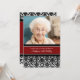 Convites de festas de aniversários da foto feita sob encomenda 85th no vermelho elegante, teste padrão floral clássico preto e branco do vintage do damasco. Adicione seus nome, foto, e detalhes do partido para um convite de aniversário original e à moda.