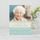 Convites de festas de aniversários da foto feita sob encomenda 85th na luz elegante - turquesa e creme azuis fora do teste padrão clássico branco do vintage. Adicione seus nome, foto, e detalhes do partido para um convite de aniversário original e à moda.