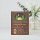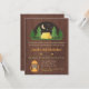 Um convite de aniversário de acampamento elegante, moderno e contemporâneo. Tem uma barraca amarela no meio das madeiras de árvores altas abaixo da lua crescente e das estrelas. Outros elementos do design incluem uma seta e uma lâmpada de querosene. Painel de madeira para o fundo. Personalize facilmente com seus detalhes do partido. Excelente para festas de aniversário, partidos do sleepover do quintal e acampamentos de Verão de acampamento!