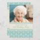 Convites de festas de aniversários feitos sob encomenda do 90 da foto na luz elegante - turquesa e creme azuis fora do teste padrão clássico branco do vintage. Adicione seus nome, foto, e detalhes do partido para um convite de aniversário original e à moda.