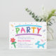Planeje uma festa de aniversário de criança com atividades de escultura de torção de balão e deixe cada pequena trazer de volta uma incrível escultura de balão! Este convite colorido e brilhante é excelente para crianças festas de aniversário que estão contratando um escultor de balão e um entretenimento! Tem as palavras festa criada usando balões, escultura de balão de flor vermelha e escultura de cão azul. Confetti de várias formas decora o convite. Personalize os detalhes de sua festa dentro do espaço disponível.