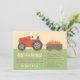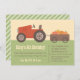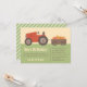 Celebre seu aniversário de criança numa fazenda de abóbora e deixe seus filhos convidados se divertirem e se divertirem com várias atividades, como hayrides e colheita de abóbora! Este convite de festas aniversário de criança define o tom certo para ele! Ele apresenta um trator vermelho puxando ao longo de uma carroça de abóboras de várias formas e tamanhos cuidadosamente protegidos por feno. Padrão de faixas inclinadas na página inversa. Paleta colorida de laranja, marrom, amarelo, vermelho e verde perfeita para aniversários no outono e outono! Personalize facilmente com os detalhes do seu partido.