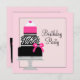 Bonito bolo de zebra rosa-quente com arco de diamante cor-de-rosa qualquer convite de aniversário. Esse convite de aniversário rosa e preto bonito funciona bem para uma festa de aniversario de meninas, doce 16 festas de aniversário, festa da Quinceanera e qualquer outra festa temática de zebra rosa e preta ou rosa. Adicione os seus detalhes à frente e/ou atrás, simplesmente escolhendo o botão "Personalizar!" para começar a adicionar os detalhes do evento, estilo da fonte, tamanho e cor da fonte e texto. Observe que todos os designs de convite que você encontrará no Zazzle são gráficos impressos em estoque de papel plano sem joias reais, arcos, levantados, gravados em relevo ou peças ou peças adicionadas. com