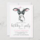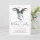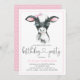 Convites de festas de aniversários de vaca com filhote de vaca, de cor aquosa, que vestem um arco cor-de-rosa num fundo de bolinhas rosa. Estes adoráveis convites de festas de aniversários de vacas são facilmente personalizados para o seu evento simplesmente adicionando seus detalhes. Você também pode adicionar uma cor de fundo.