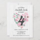 Madeira branca chica e Convite de aniversário de corações cor-de-rosa-rosa com pincel branco, com flores cor-de-rosa fofinho e vírgula! Personalize-o adicionando suas informações! Verifique meu compro para ver toda a coleção com este design!