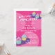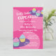 Convites de festas de aniversários de panificação de cupcake. Modelo divertida com cupcakes coloridos. Personalize com o nome da criança e o dia de celebração. Design com cor de fundo rosa ou personalizada.