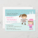 Se a aniversariante adora patinar gelo, planeje uma festa de aniversário temática de patinação no gelo para que ela possa girar, girar e skate com seus amigos! Este convite apresenta duas meninas bonitas vestidas com calor em roupas de inverno como cachecol, jaquetas e chapéu de gorro. Flocos de neve e árvores decoram o fundo. Excelente para aniversários de idade até adolescentes. Personalize facilmente com os detalhes do seu partido.