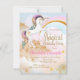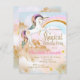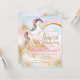 Convites de festas de aniversários do Unicórnio com bonito unicórnio roxo e azul-lacrimogênio e arco-íris numa bela nuvem de ouro. Este belo convite de aniversário de unicórnio pastel é facilmente personalizado para o seu evento simplesmente adicionando os detalhes do seu evento no estilo de letra da sua escolha. Você também pode alterar a cor de fundo. Este é um design impresso sem brilho real.