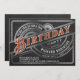 Convites de festas de aniversários masculinos - Sinalização retrovítrea com folha de prata falsa sobre o quadro.