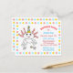 Bonita axolotl temia convites de aniversário. Bolinhas cor-de-rosa, amarela e azul e um axolotl vestindo convites de aniversário para essa garota. Na parte de trás do convite está um lugar para as crianças pintarem uma foto para a aniversariante.