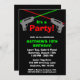 Um convite de aniversário temático do Tag do laser do divertimento. Mostrado em vermelho, em verde e em preto. Aperfeiçoe para o partido do Tag do laser de uma criança! Personalize facilmente para seu evento.