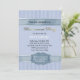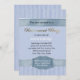 Convites de festas de aposentadoria muito detalhados em padrão de faixa azul pastel. Acentos de fita azul. Este design elegante é perfeito para um homem ou uma mulher. O Nome, Data, Local e Texto RSVP está pronto para você personalizar com suas informações.