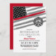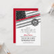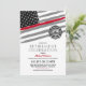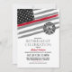 Convites de festas de aposentadoria divertidos com a bandeira de um bombeiro a aquarelas com uma fina linha vermelha, que você pode personalizar para sua próxima celebração.