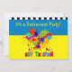Professor de Arte, Convites de festas de aposentadoria, "É uma festa de aposentadoria", design cardíaco de plástico sobre fundo azul e amarelo. O retorno dos convites é totalmente personalizável.