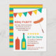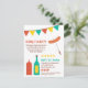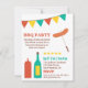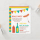 Convide seus amigos e família para a festa de churrasco no quintal da sua nova casa com este convite. Tem uma bandeira colorida, uma salsicha de cachorro-quente em um sabiá, uma garrafa de molho de chili e uma garrafa de vinho. O convite está na paleta de cores vintage. Personalize facilmente com os detalhes do seu partido. Padrão de distribuição na página inversa. Excelente para comemorar aniversários adultos e festas de verão.