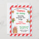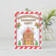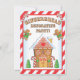 Celebre o Natal com esta adorável e detalhada casa de Gingermore com goteiras e um doce de bico listrado. Crianças e adultos se divertirão olhando para as diferentes doces e biscoitos que compõem este convite. A parte de trás é fofa como a frente com um excelente de biscoitos e todas as informações da sua festa. Excelente para uma Festa de aniversário de Natal. Ilustração desenhada à mão por McBooboo.