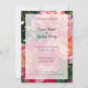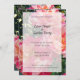 Rosas elegantes, cor-de-rosa e listradas brancas florescem nesta fotografia floral de arte, com sua festa em letras-guião, e o tempo e endereço em letras-bloco de safra em um fundo translúcido.