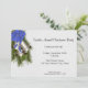 Convites de Natal com sinos prateados e um arco azul. Todo texto é personalizável.
