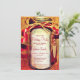 Um convite de festas de Natal rústico com um jarro de mason com fita vermelha e etiqueta de Papai noel rústica pendurada no lado do jarro de mason. Adicione seu próprio texto de convite de festas a este modelo. Se precisar adicionar ou excluir linhas de texto, use o botão "Personalizar". O verso do convite é vermelho sólido.