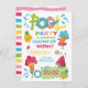 Convites de festas Piscinas super bonitos. Apresenta doces aperitivos, rosquinhas, abacaxi, cones de sorvete e personagens de melancia prontos para mergulhar na piscina. Excelente para todas as idades e gêneros.