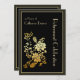 Design floral elegante preto e dourado com um esquema moderno limpo. Uma escolha na moda para a festa de aposentadoria de uma mulher. Personalize o texto frontal da placa e preencha as informações do evento no design de retorno correspondente.
