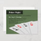 Um simples convite para convidar convidados para uma festa de aquecimento da casa com um tema noturno de pôquer. Este convite tem cartas de jogo, ás de paus, ás de ouros, ás de espadas e ás de corações espalhados numa mesa verde. Personalize facilmente com os detalhes do seu partido. Imagem fornecida por pixel.