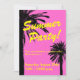 Convites de festas de verão, Neon rosa e palmeiras. Convites personalizados para festas quentes de praia de verão, como aniversários, graduações, reuniões, aposentadorias etc. Texto de anúncio personalizável e cor de fundo. Design de palmeira tropical com cores brilhantes ensolaradas. Rosa quente e preto.