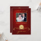 Convites de festas personalizados do 50º aniversário — Destaques elegantes de ouro em negrito fundo Real Ruby Vermelho com quadro fotográfico e monograma antigo clássico. Adicione sua própria foto e personalize o nome, a data e os detalhes da ocasião feliz. Perfeito para fotos contemporâneas ou antigas. Mude facilmente o texto e os números de outras celebrações de marco, 40.º, 45.º, 60.º, 65.º, etc. Envelopes correspondentes, correio e cartões de agradecimento disponíveis. **NOTA: Dimensionado para cartões de convite 5x7. Outros tamanhos e estilos disponíveis na galeria.