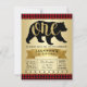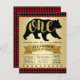 Lumberjack faz os primeiros convites de aniversário com ursos negros e UM de ouro num fundo de xadrez de búfalo dourado, preto e vermelho. Este convite para primeiros aniversarios de urso é facilmente personalizado simplesmente adicionando os detalhes do seu evento. Este é um design impresso sem brilho real.