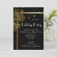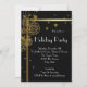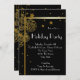 Elegante modelo de convite para festas de Natal preto e ouro. Este belo convite para festas de ouro e feriado preto é facilmente personalizado para o seu evento, simplesmente escolhendo o botão "Personalizar!" para começar a adicionar detalhes do evento, estilo de fonte, tamanho de fonte e cor e texto. Observe que todos os designs de cartas e convites que você encontrará no Zazzle são gráficos impressos sem joias reais, arcos, levantados, gravados em relevo ou peças ou peças adicionadas.