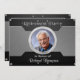 Cinzas pretas e metálicas modernas com sotaques de cinza prateada. O metal escovado e o padrão de malha fazem uma escolha perfeita para a festa de aposentadoria de um homem. Carregue sua foto para substituir o modelo de foto mostrado. Adicione o Nome à frente da placa e preencha as informações de evento no design de retorno correspondente com suas informações.