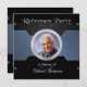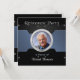 Preto e azul modernos com sotaques de cinza prateada. O metal escovado e o padrão de malha fazem uma escolha perfeita para a festa de aposentadoria de um homem. Carregue sua foto para substituir o modelo de foto mostrado. Adicione o Nome à frente da placa e preencha as informações de evento no design de retorno correspondente com suas informações.