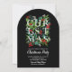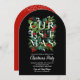 A palavra NATAL com verde e bagas sotaque a sua informação de festas em letras chic nesses convites de festas negros de Natal no topo da praça. CORRESPONDENTE a itens na nossa coleção.