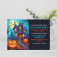 Este convite para festas de Halloween ilustra uma mansão assustadora assombrada. Este convite criativo pode ser facilmente personalizado para mostrar quando, onde e um breve resumo dos detalhes da celebração do Dia das Bruxas que você pode ajustar para tornar este cartão bastante pessoal.